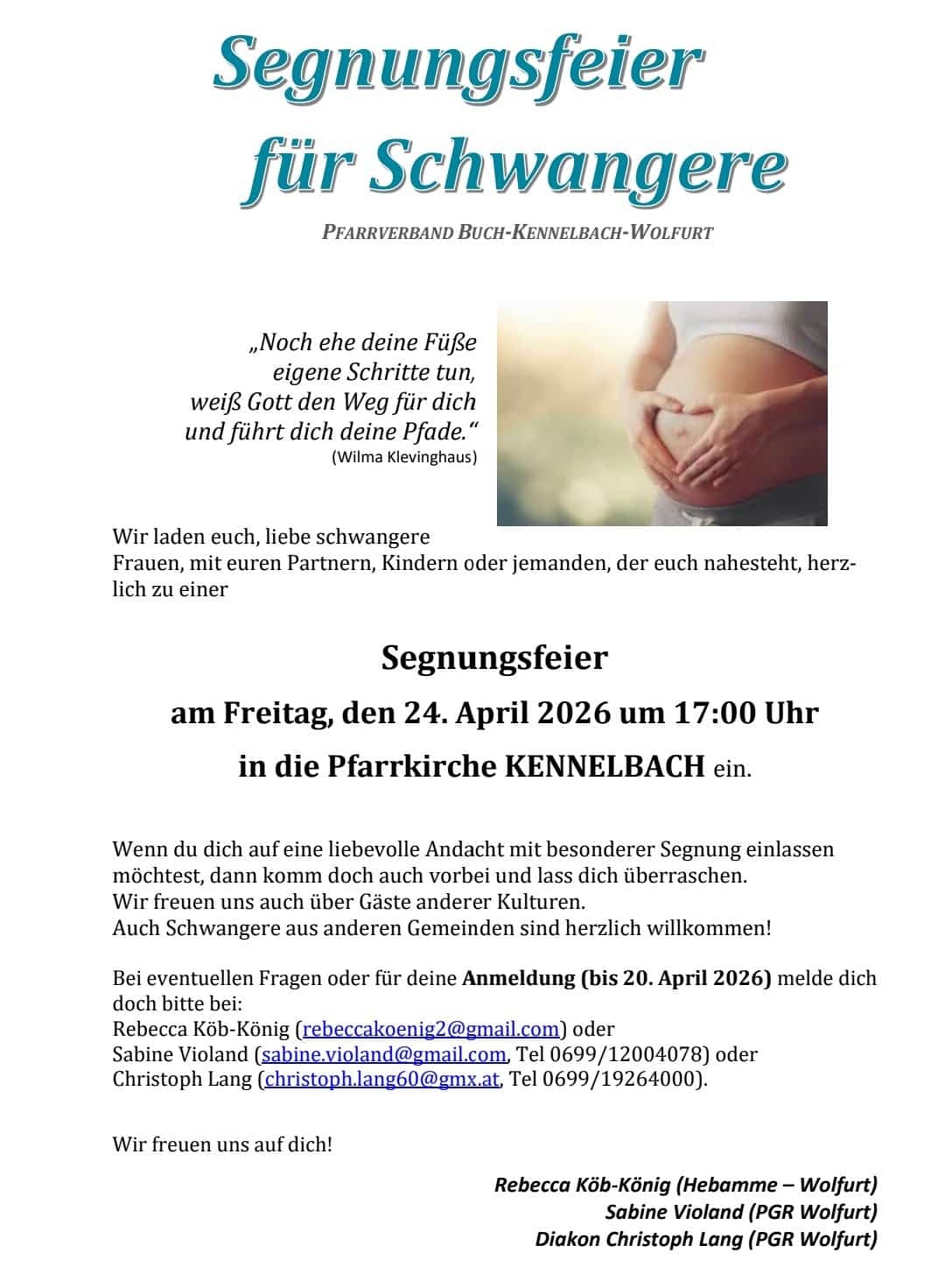 Unser Pfarrverband umfasst die vier Pfarren Doren, Langen, Sulzberg und Thal und wird von Pfarrmoderator Pater Regis Mushunje CMM gemeinsam mit Vikar Pater Abidon Kabwe CMM geleitet.