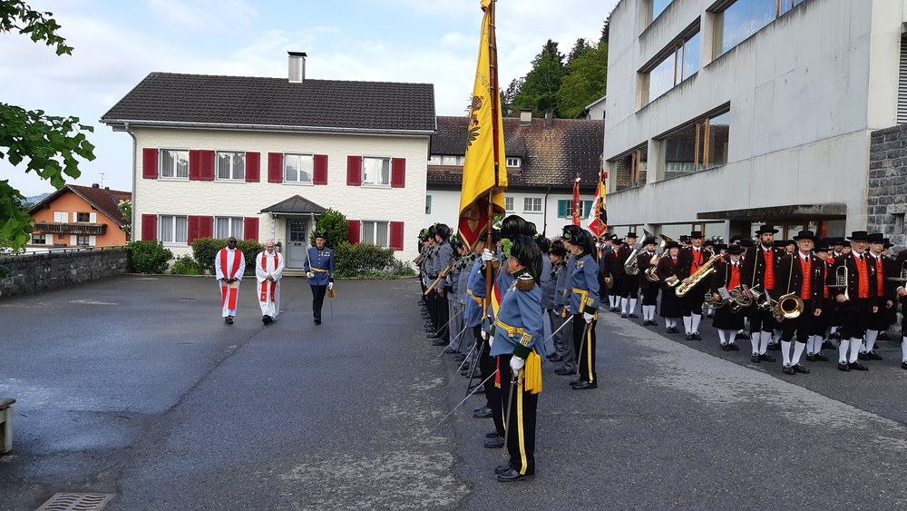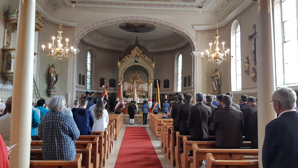 Die Festtagsmesse wurde gemeinsam von Pfarrer Albert und Pater Abidon zelebriert und traditionellerweise rückten der Musikverein, die Bürgerschützen, der Kameradschaftsbund und die Feuerwehr aus.