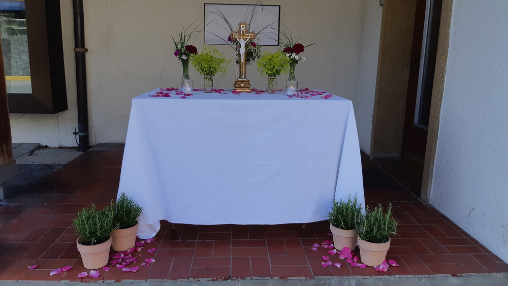 An Fronleichnam gedenken wir der Einsetzung des Sakraments der Eucharistie durch Jesus Christus selbst. Somit lässt sich Fronleichnam sozusagen als zweiter Gründonnerstag unter anderen, fröhlicheren Vorzeichen verstehen. Diese Feier wurde in Doren mit einer Prozession im Dorfzentrum begangen, an der die Bürgerschützen, der Kameradschaftsbund, der Musikverein und die Feuerwehr teilnahmen.