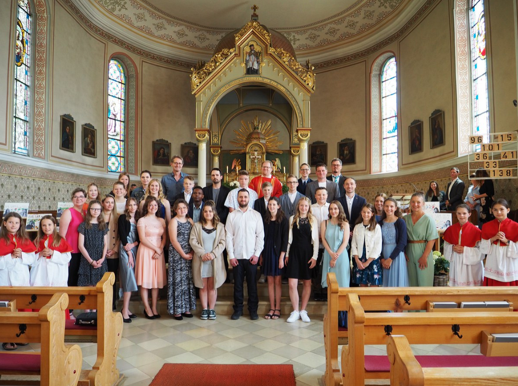 Jugendseelsorger und Dompfarrer Fabian Jochum spendete 16 Mädchen und Buben aus Doren am 17.6. das Sakrament der Firmung.