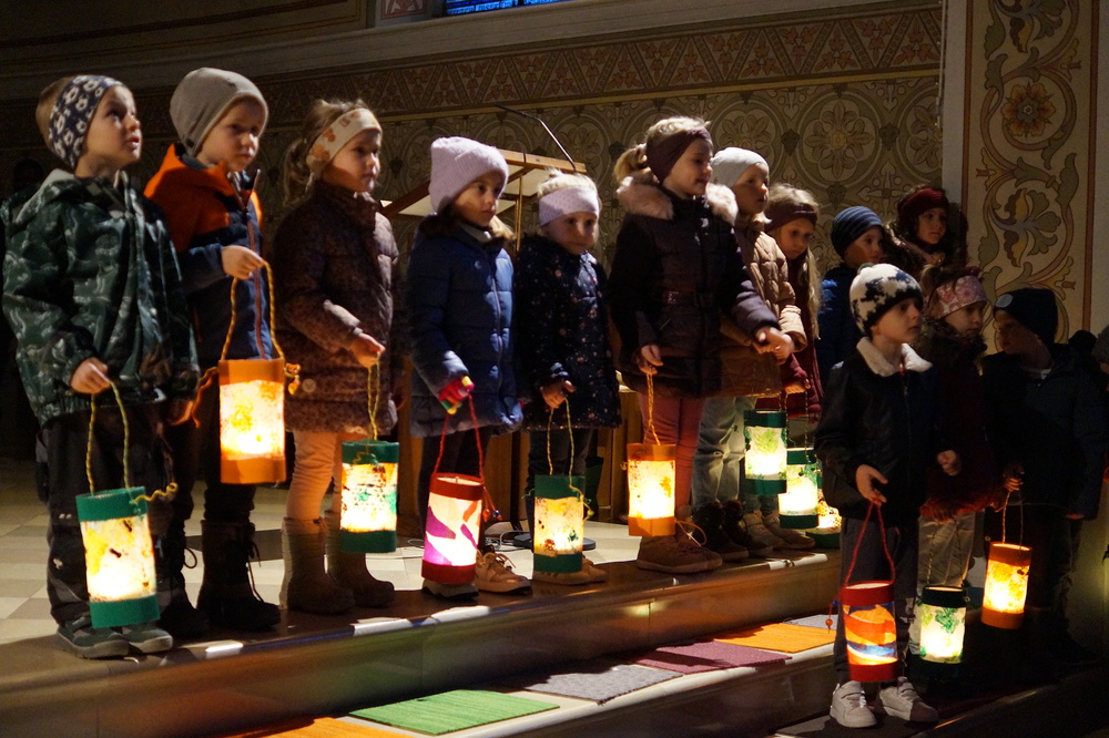 Bei klarem Sternenhimmel zogen 30 Kindergartenkinder mit ihren selbstgebastelten Laternen und dem bekannten Lied "Ich geh mit meiner Laterne" in die Kirche ein.