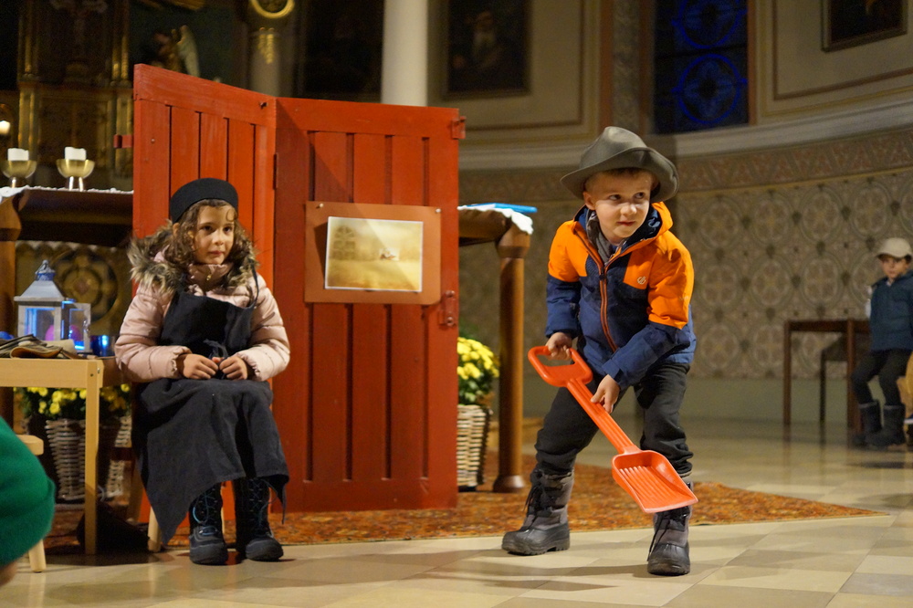Die Geschichte von Martin, dem Schuster, durften die Kinder liebevoll darstellen und singen. Zu Beginn begrüßte uns Pater Regis herzlich und spendete uns am Ende der Feier den Segen.