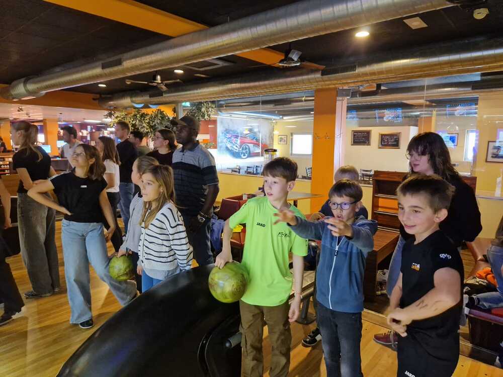 Der Ministrantenausflug im November führte 26 Kinder und Jugendliche und acht Begleiter*innen, darunter Pater Abidon, ins Bowlingcenter Strike in Lauterach.
