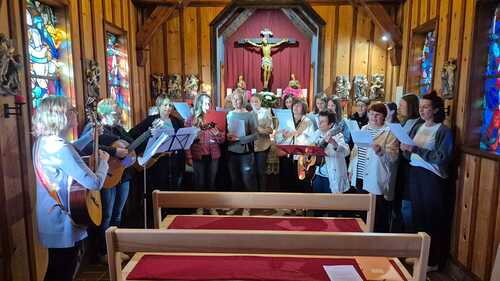Das Frouachörle "Chörfällig" gestaltete am 13.05.2025 die Maiandacht in der Kapelle Sulz feierlich mit.