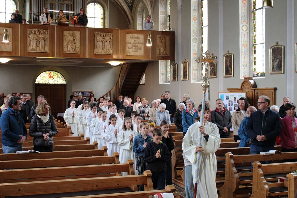 22 Ministrantinnen und Ministranten feierlich in die Kirche ein.