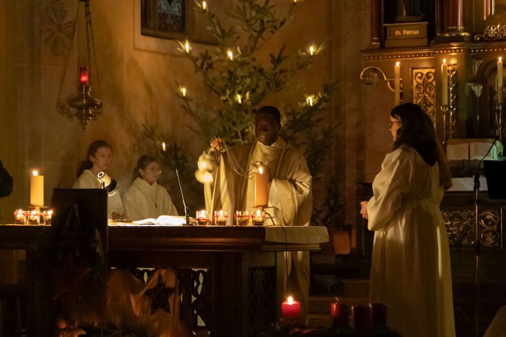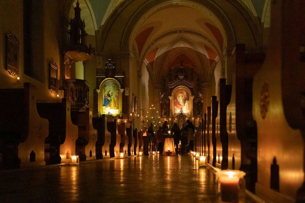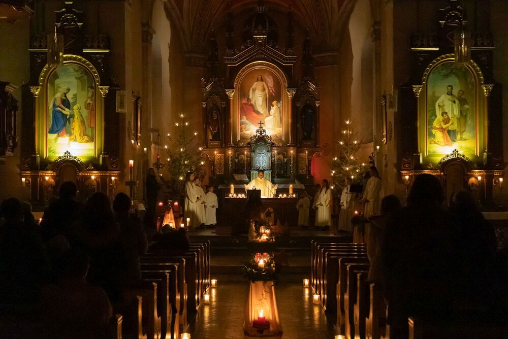 Der Thaler Männerchor sorgte mit alten, gregorianischen Liedern für eine ganz besonders feierliche Stimmung. Der Kirchenraum erstrahlte im Kerzenschein und die zahlreichen Ministranten umrahmten diese schön gestaltete Messe.