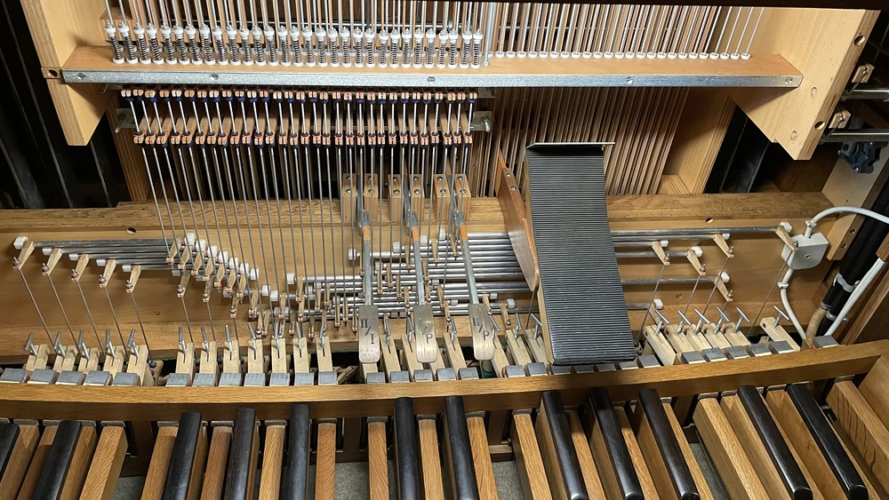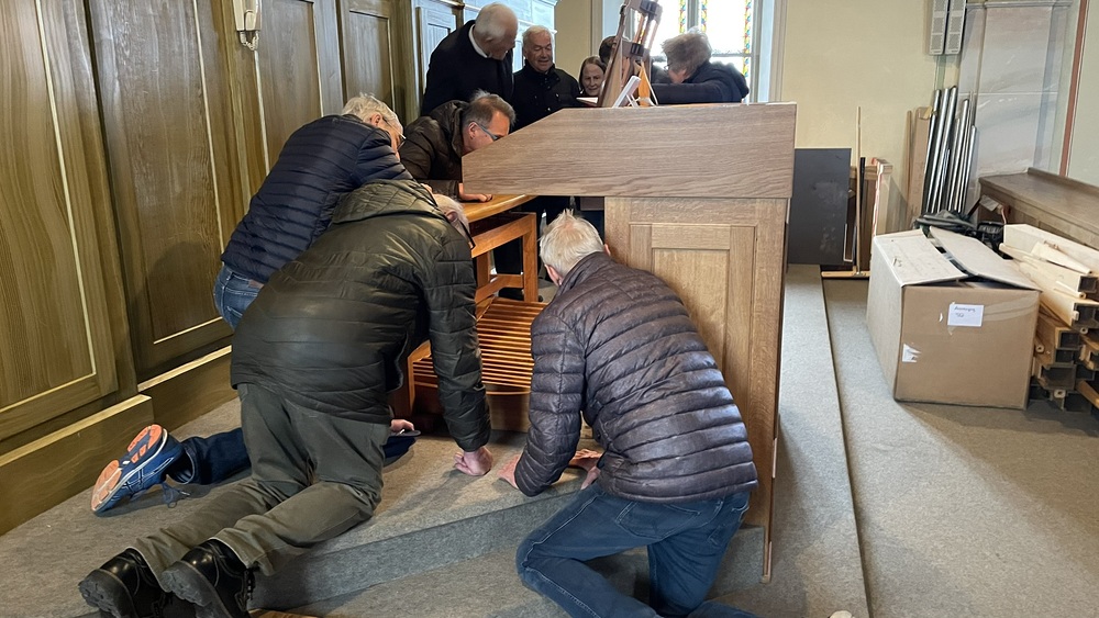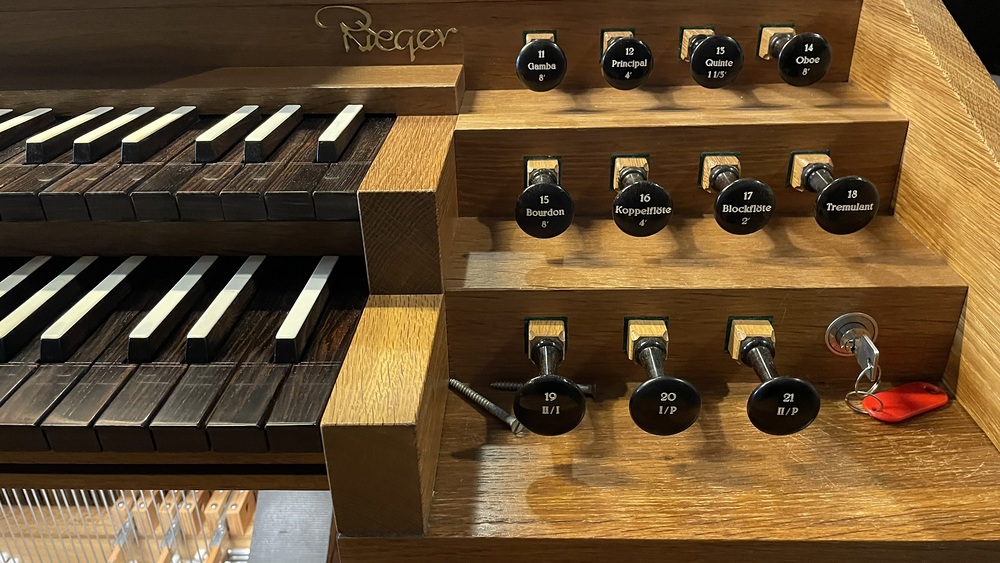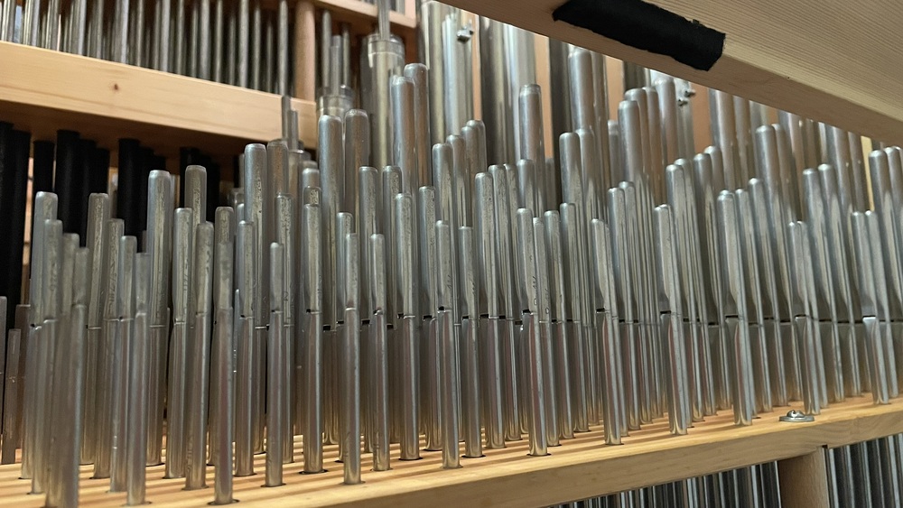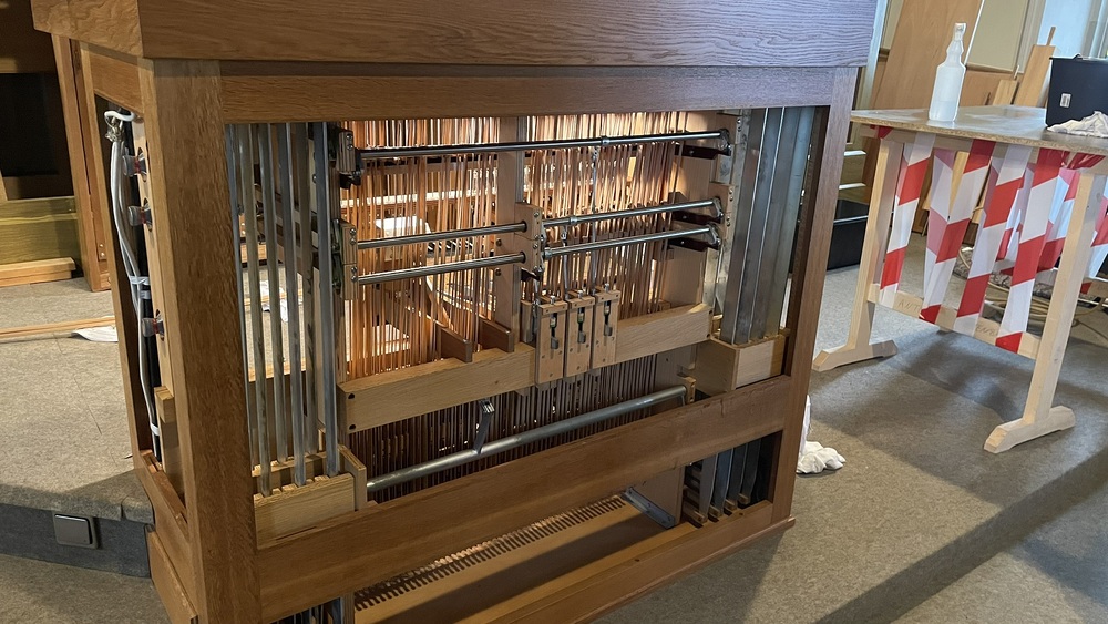 In der kommenden Woche wird an der Feinabstimmung des Klangwerkes gearbeitet, bevor das Instrument abschließend von einer Orgelkommission auf Herz und Nieren geprüft, eingespielt und danach wieder an unseren Organisten Simon Wirthensohn übergeben werden kann.