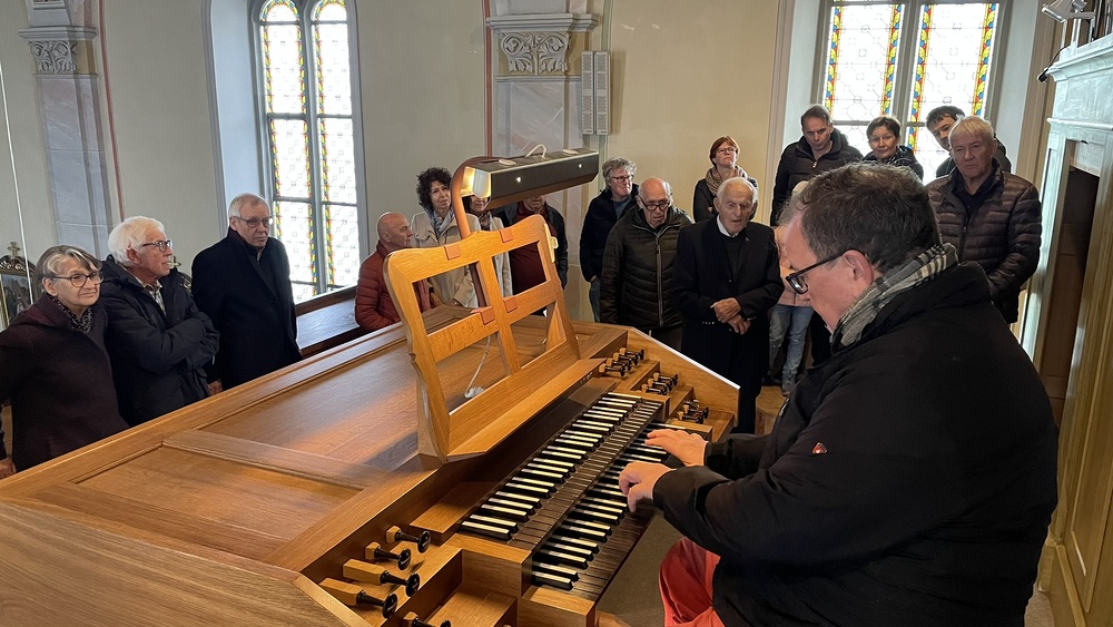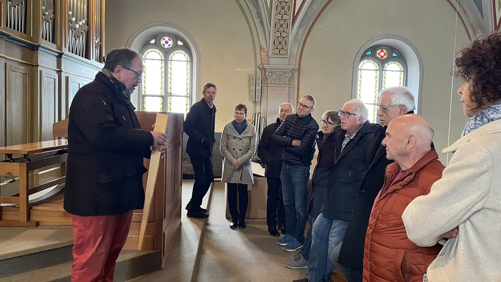 Herr Reiner Schuhenn von der Firma Rieger Orgelbau war am Sonntag, 10. November zu uns nach Thal gekommen, um den Messbesuchern Details zur Orgel und den Sanierungsarbeiten zu erklären. So versammelten sich zahlreiche Interessierte nach der Messfeier auf der Empore um höchst beeindruckende Einblicke in dieses Meisterstück an Mechanik und Klang zu bekommen. Vermutlich haben die wenigsten schon mal das Innenleben des Spieltisches oder die Balganlage zu sehen bekommen.
