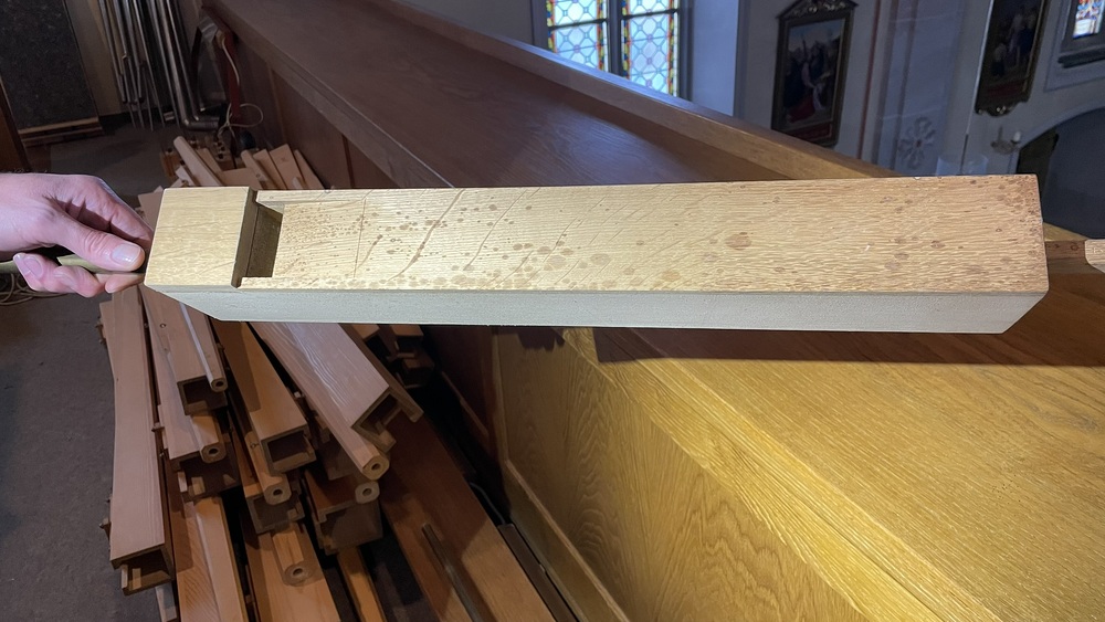 In den vergangenen Wochen haben zwei fachkundige Mitarbeiter der Firma Rieger die Orgel zerlegt und sorgfältig gereinigt. So wurden unter anderem nicht nur die 1100 Orgelpfeifen gewaschen, sondern auch alle Holzwände mit Alkohol behandelt und die Tastatur geschliffen und poliert.
