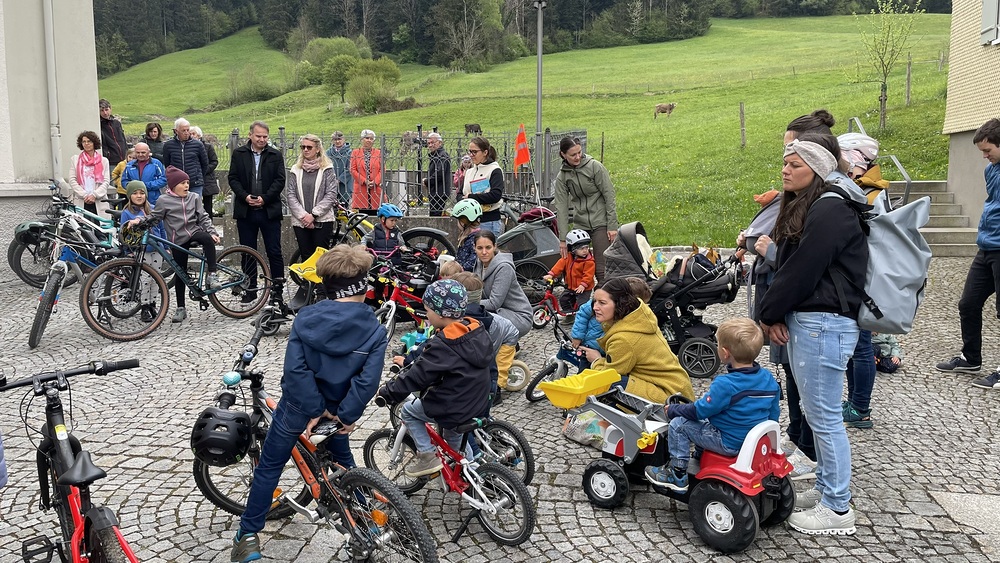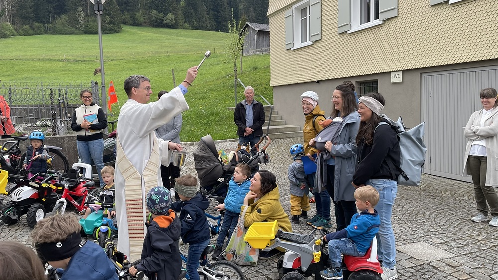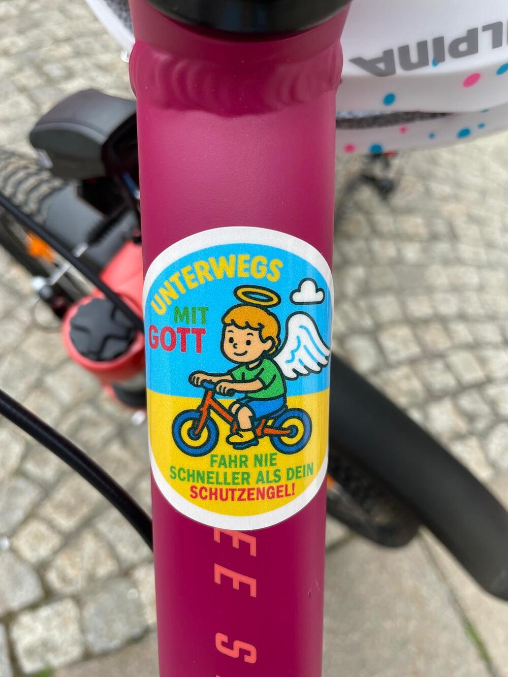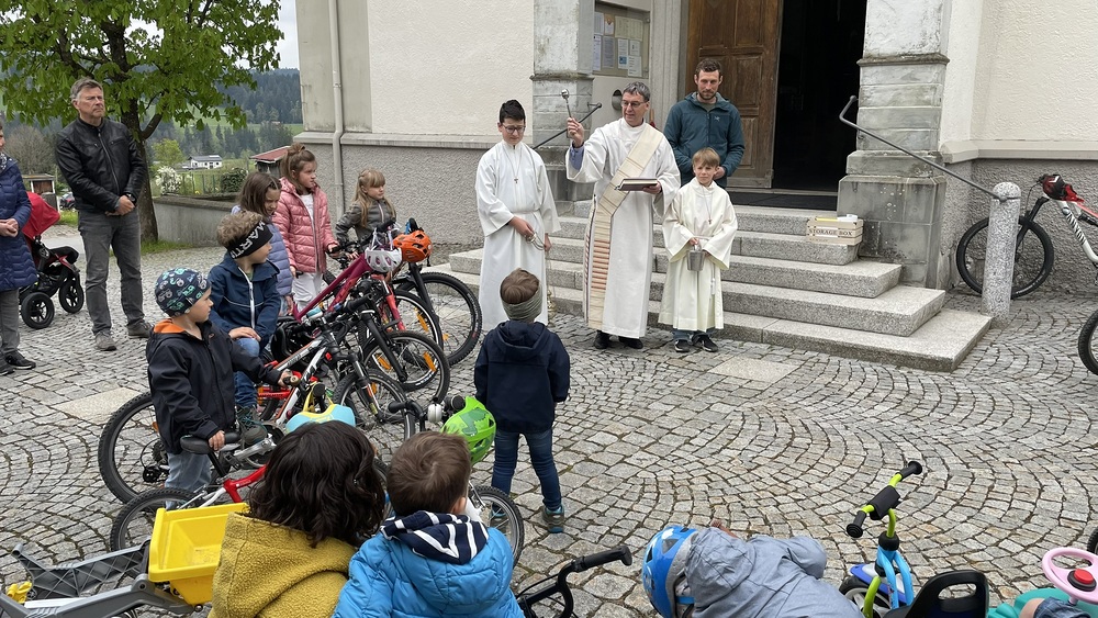 Nach Beendigung des Gottesdienstes ging es nach draußen, wo die Kinder sich mit ihren unterschiedlichen Fahrzeugen aufstellen durften und Diakon Ludwig ihnen und ihren Fahrzeugen den Segen Gottes mit auf den Weg gab. Zur Erinnerung daran bekam jedes Kind einen speziellen Aufkleber, welchen es auf sein Fahrzeug kleben durfte.