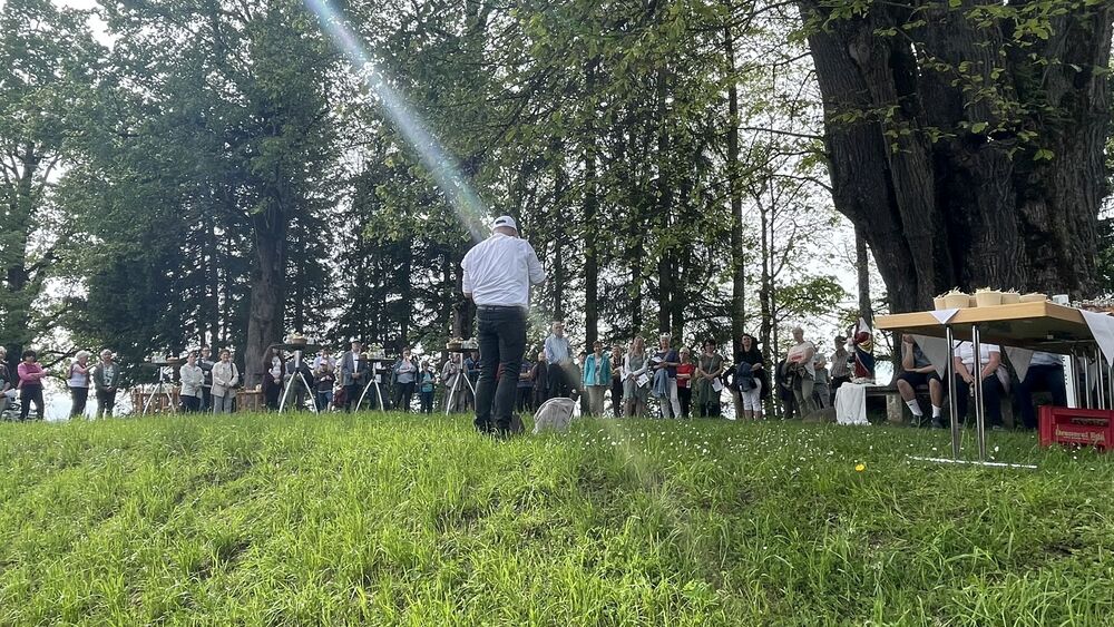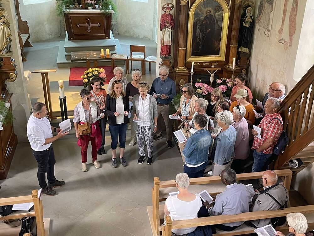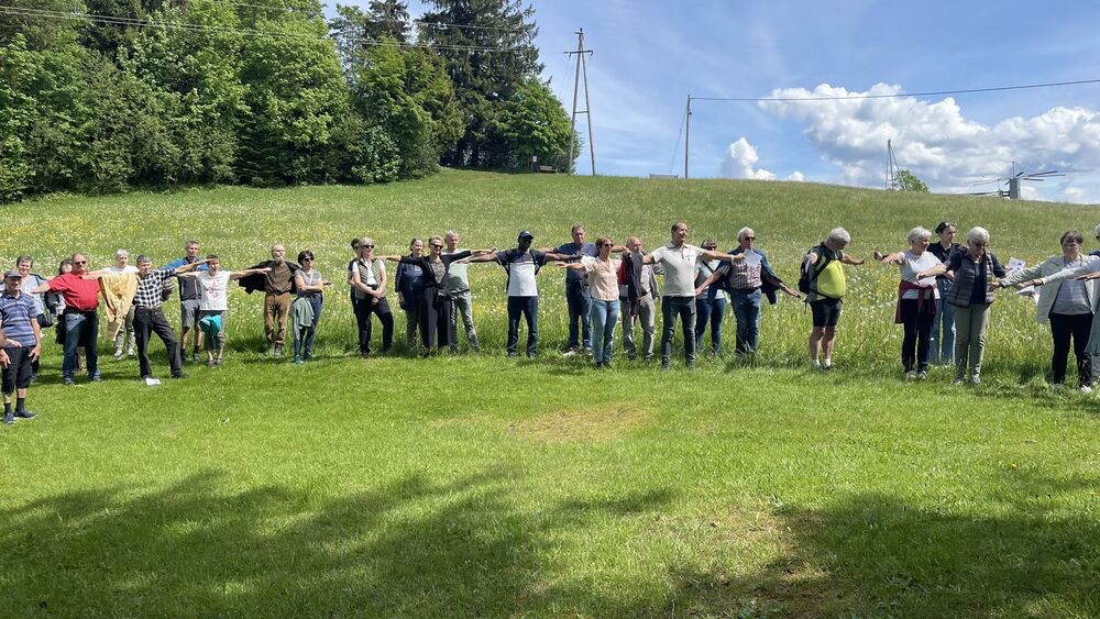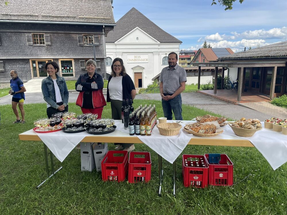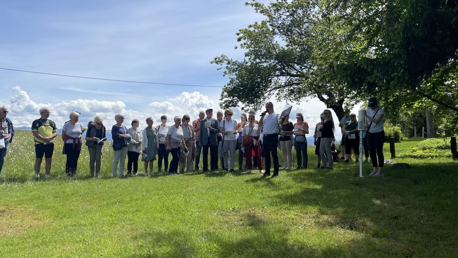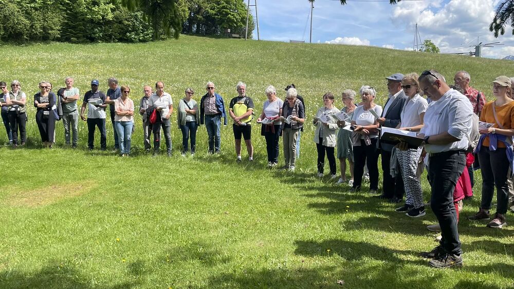 Zum Abschluss unserer gemeinsamen Kapellenwanderung wurden wir mit einer wunderbaren Agape unter der majestätischen Marienlinde belohnt, die vom PGR Sulzberg organisiert wurde. Marion und Petra sowie die Sängerinnen und Sänger der Singgemeinschaft Langen sorgten abwechselnd für die musikalische Umrahmung bei den Stationen.
