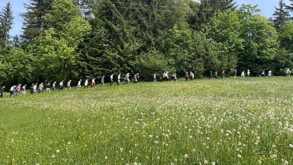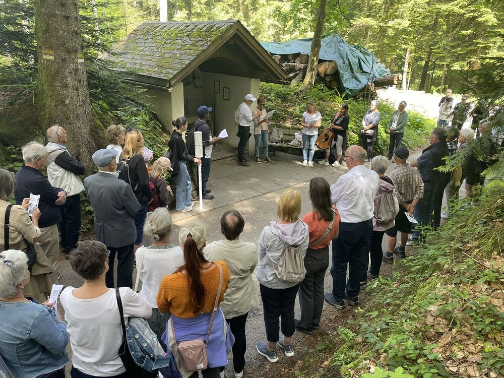 Der zweite Halt war bei einer „Frei-Kapelle“ unter Gottes Himmelszelt. Hier verinnerlichten wir das Bild eines Baumes, das die Dreifaltigkeit Gottes widerspiegelt.