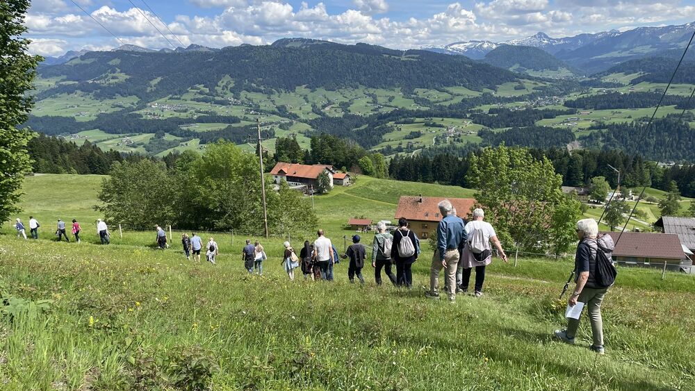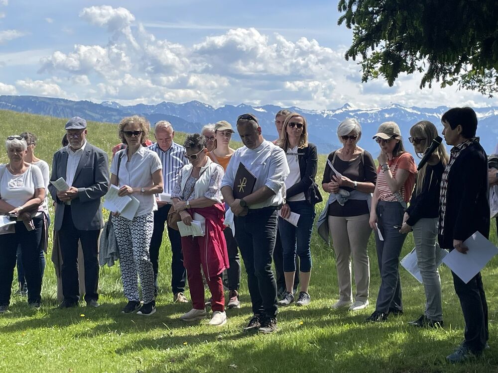 Bei strahlendem Sonnenschein und einer wunderbaren Sicht in die Weite des Bregenzerwaldes, Pfänderstocks und Allgäus hinein, machten sich an die 100 Pilger aus unseren vier Pfarren auf den Weg.
